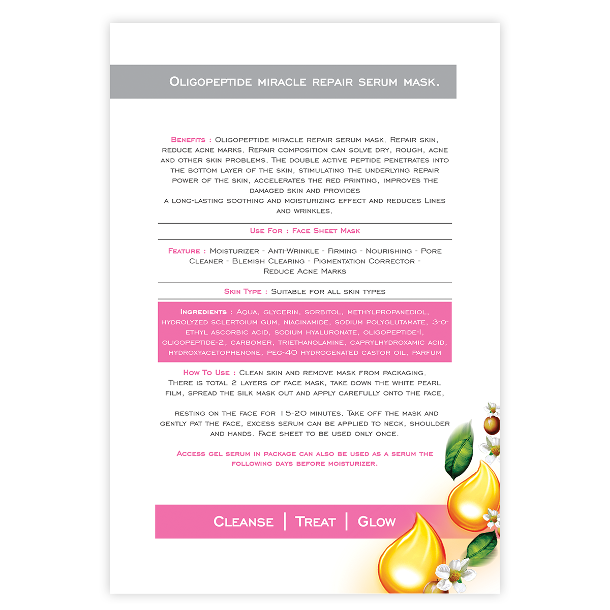 Peptide repair composition can solve dry, rough, acne and other skin problems. The double active peptide penetrates into the bottom layer of the skin, stimulates the underlying repair power of the skin, accelerates the red printing and fades, improves the damaged skin, and provides long-lasting soothing and moisturizing. Lines and wrinkles look dramatically reduced